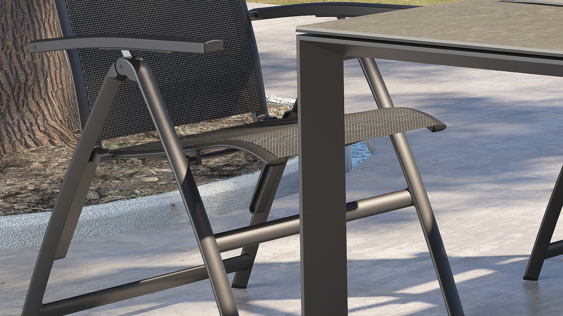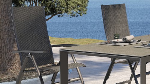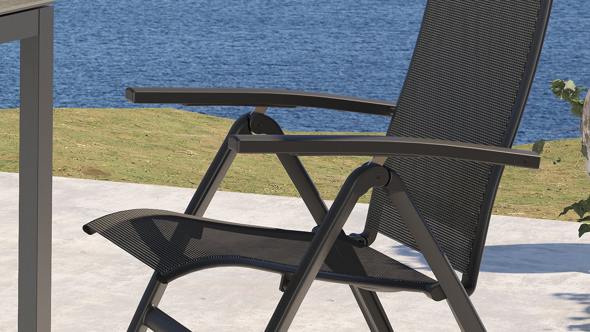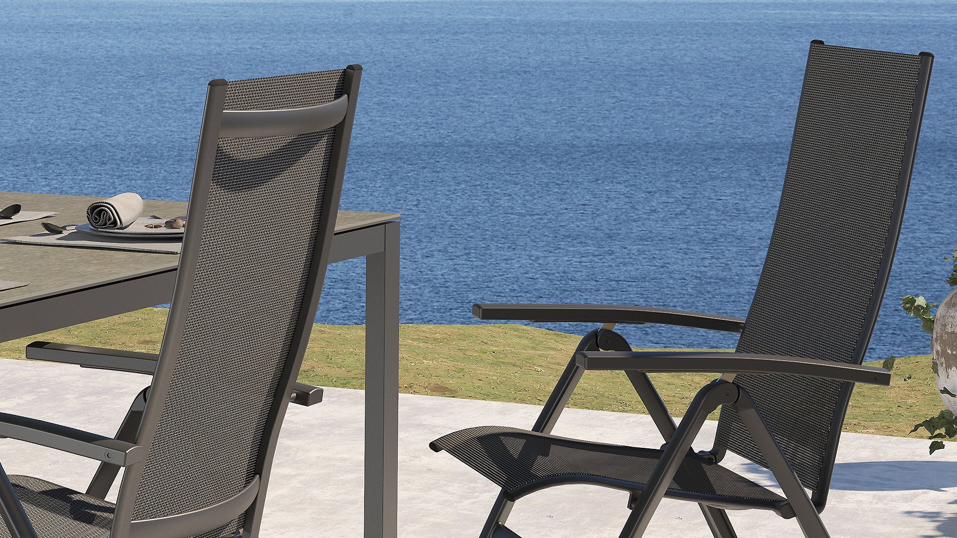 De Taste 4 Seasons Cadiz is een degelijke standenstoel met een elegant design en een uitmuntend zitcomfort. 100% aluminium frame, sterk, lichgewicht en onderhoudsvrij. In de prachtige kleur Antraciet. De verstelbare stoel, met aluminium frame in Matt Carbon kleur met textileen bespanning. Deze verstelbare tuinstoel Cadiz van het tuinmeubel merk Taste by 4 Seasons is licht van gewicht en eenvoudig in te klappen zodat de stoelen niet alleen makkelijk zijn op uw balkon en terras, maar ook handig op te bergen zijn. U kunt deze ook gewoon het hele jaar door buiten laten staan!