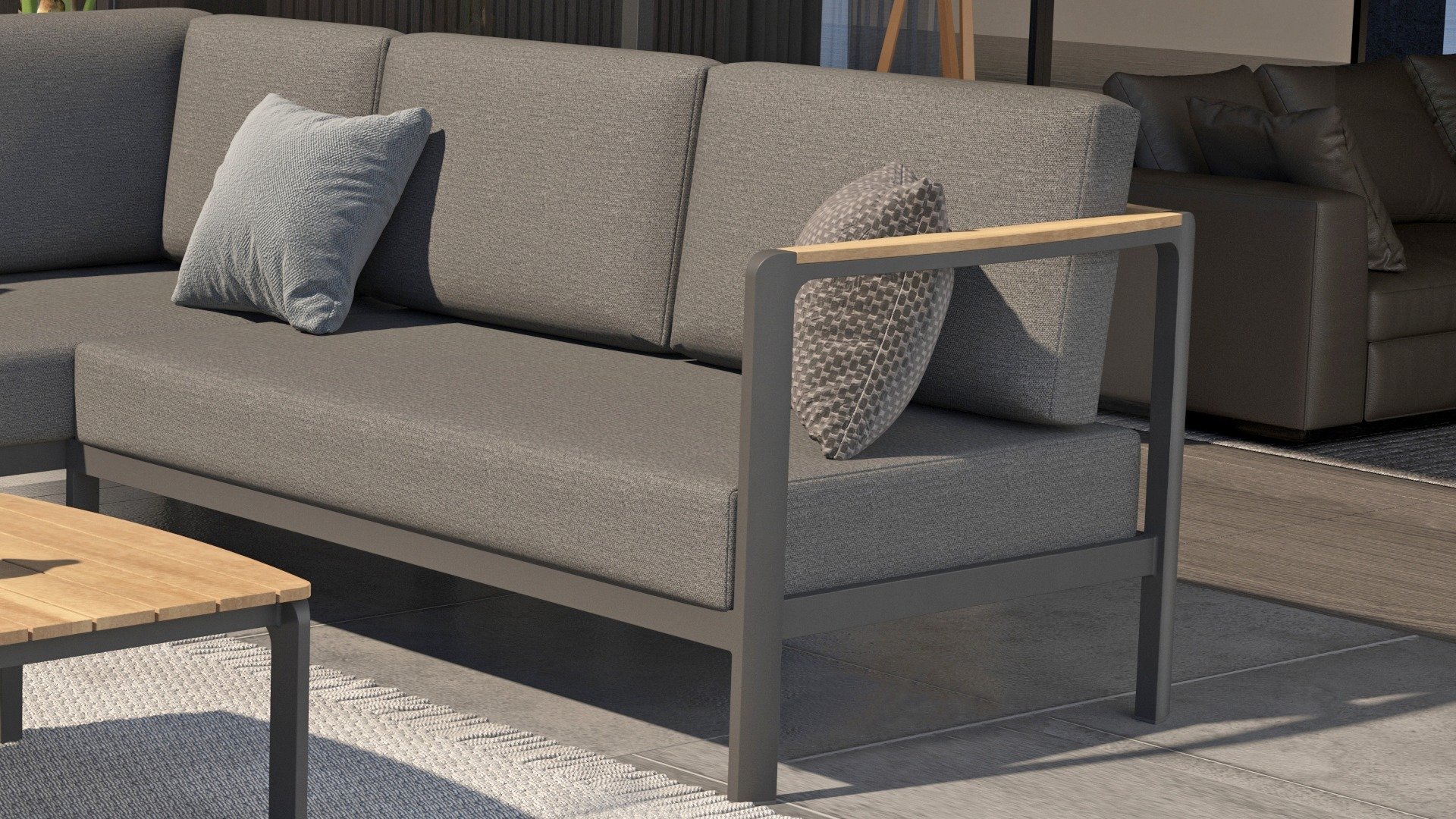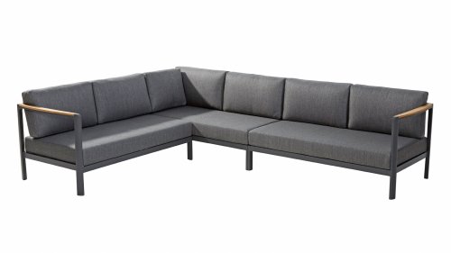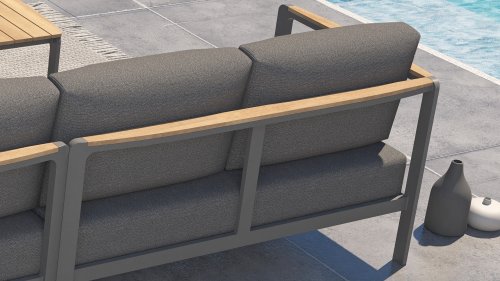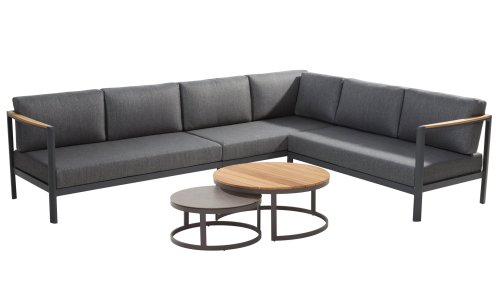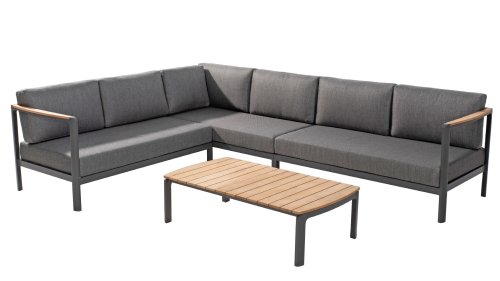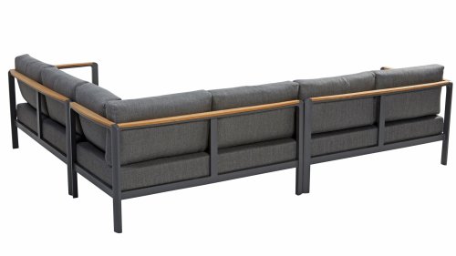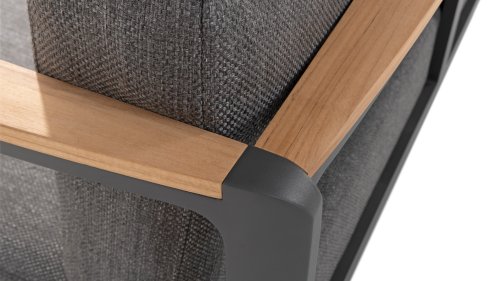 De kleuren combinatie met het teakhout en aluminium zorgt voor een fantastische uitstraling! Metname door de vloeiende vormengeving van de teakhouten armleuning die geheel doorloopt in de rugleuning si een ware eyecather en geven de Cortina Loungeset de aandacht die het verdient! Het is kwaliteit en dat zie je bijvoorbeeld ook terug in het aluminium frame, deze is minimaal 2 mm dik en voorzien van een extra sterke Matt Carbon poeder coating. Het frame is hierbij beter beschermd en sterker dan vele andere tuinmeubelen. Vandaar dat ook op dit set standaard 5 jaar garantie van toepassing is. Het moderne design, de hoogwaardige materialen en het uitzonderlijk goed zitcomfort zijn dé kenmerken van de Taste 4 Seasons Outdoor Cortina Loungeset!