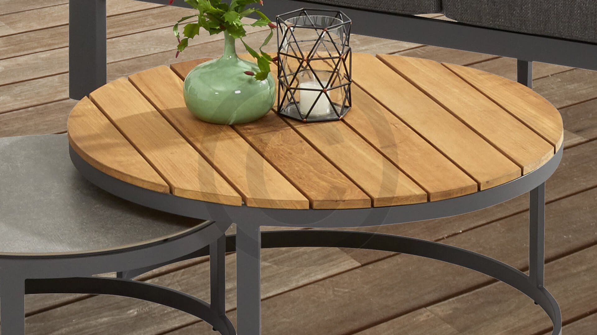 1 x Taste Stonic salontafel set Alu/Keramiek-Teak ± Ø 80/60x37/29cm DxH