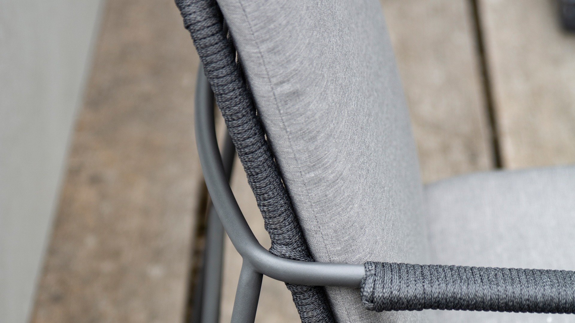 De Taste Elba loungeset heeft een moderne minimalistische uitstraling met een natural touch die zo kenmerkend is voor het Scandinavisch Design. De schoonheid zit hem in de details. Het frame van de Taste Elba Loungeset loopt strak en vloeiend in elkaar over en daar waar het vloeiende frame samenkomt wordt het afgewerkt met het strak omvlochten antraciet Rope. Rug en zitting is gevlochten met dit sterke rope en geeft een stevige maar comfortabele zit. Het frame vormt een speels en minimalistisch samenspel van vloeiende lijnen die samenkomen en weer uit elkaar gaan een lust voor het oog!