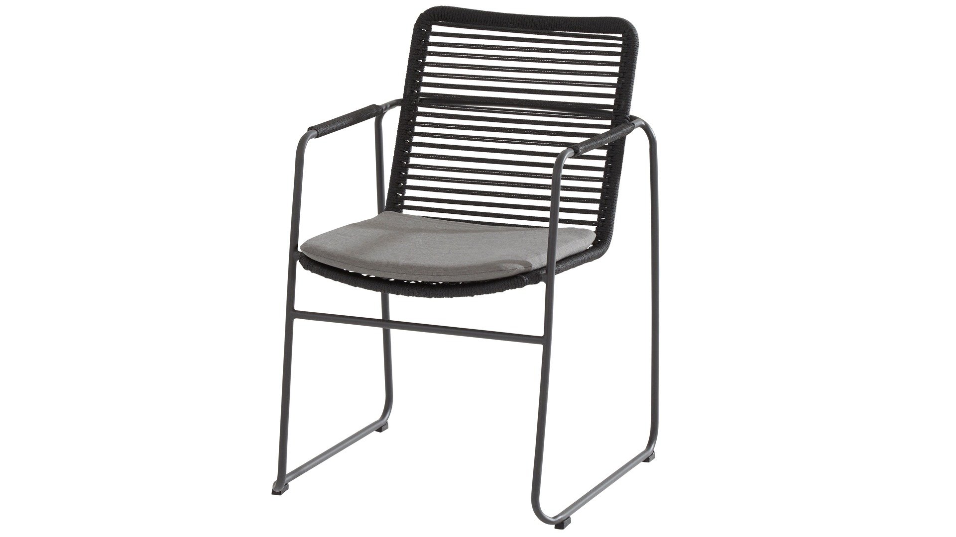 De Elba Diningstoel van Taste by 4Seasons bestaat uit een gepoedercoat RVS frame met strakgespannen Rope. De Rope heeft een harde kern, waardoor hij nauwelijk uitrekt. In combinatie met het standaard meegeleverde zitkussen, is deze stapelstoel erg comfortabel. In combinatie met de warme kleuren van de Basso tafel, is deze diningset een aanwinst in iedere tuin.