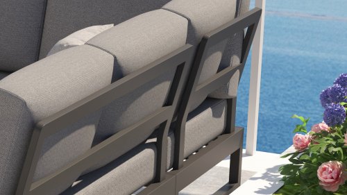 Het frame van de Taste Matisse bestaat uit aluminium in de kleuren antraciet en wit, gecombineerd met de comfortabele Olefin kussens in de kleur Grey onstaat een geheel dat gezien mag worden en prachtig is van alle kanten! De kussens hebben een Olefin hoes welke af te ritsen is en uit te wassen op 30 graden. Deze stof is zeer weerbestendig en duurzaam.