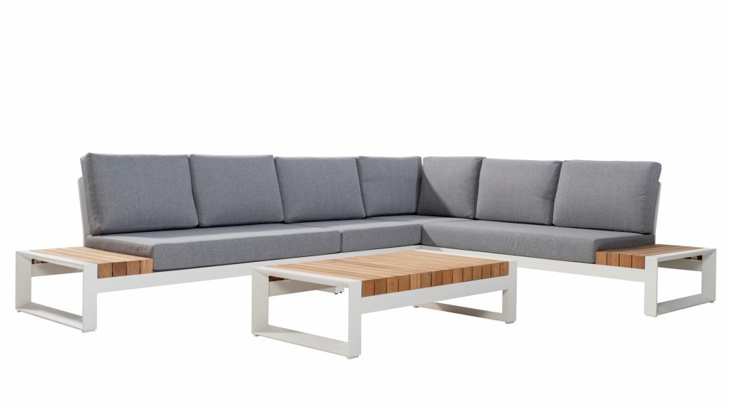 Het frame van de Taste Matisse bestaat uit aluminium gepeodercoat in de kleur Antraciet of in de kleur White, gecombineerd met de comfortabele Olefin kussens in de kleur Light Grey en (zij) tafels met teakhouten details, onstaat een geheel dat gezien mag worden en prachtig is van alle kanten! De kussens hebben een Olefin hoes welke af te ritsen is en uit te wassen op 30 graden. Deze stof is zeer weerbestendig en duurzaam.