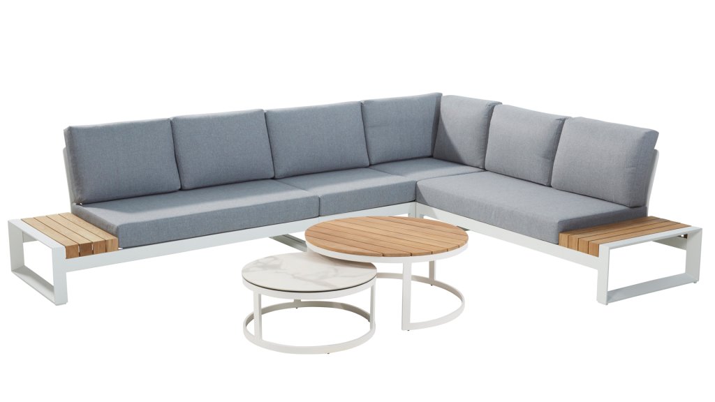 Het frame van de Taste Matisse bestaat uit aluminium gepeodercoat in de kleur Antraciet of in de kleur White, gecombineerd met de comfortabele Olefin kussens in de kleur Light Grey en (zij) tafels met teakhouten details, onstaat een geheel dat gezien mag worden en prachtig is van alle kanten! De kussens hebben een Olefin hoes welke af te ritsen is en uit te wassen op 30 graden. Deze stof is zeer weerbestendig en duurzaam.