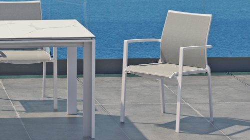 Het frame van de Taste by 4seasons Melbourne tuinstoel is van aluminium, de zitting en rug is van weersbestendig textileen. De Taste by 4Seasons Melbourne tuinstoel is voorzien van een textileen zit en rug die zorgt voor een nog beter zitcomfort! Het is stapelbaar, leverbaar en de Melbourne white is ook te verkgrijgen in de kleur Antraciet!