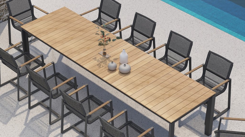 1 x Taste Optimum uitschuiftafel 220/280/340x95xH75cm Teak-Alu Antraciet