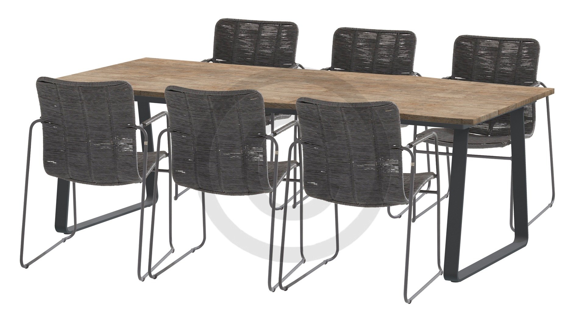 1 x 4 Seasons Outdoor Konos Tafel 220x95cm Antraciet/Robusto Teak