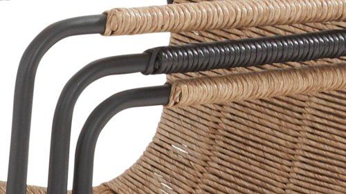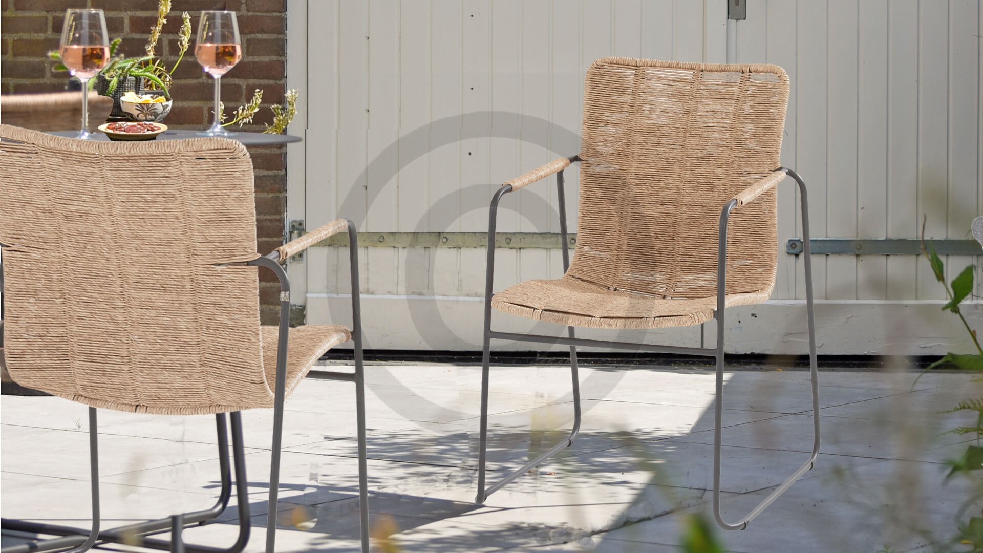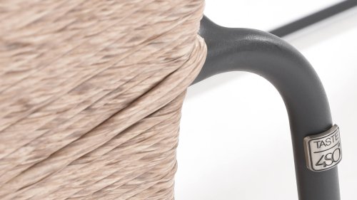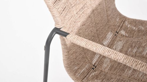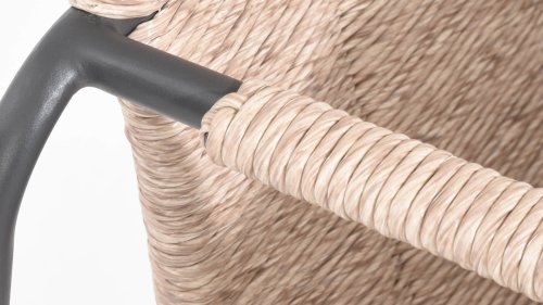 Het antraciet frame van RVS heeft een sterke maar minimale en industriële look door de dunne ronde buizen. De afgeronde hoeken geven het nog steeds wel een vriendelijk karakter. Het materiaal van de Palma stoel is uniek in onze collectie. Het is een gedraaide vlechtwerk-draad. Het geeft de Palma stoel een natuurlijk touw-achtig uiterlijk. Zowel de zitting als de rugleuning is gemaakt van dit materiaal en ook de armleuning zijn omwikkeld met hetzelfde vlechtwerk.