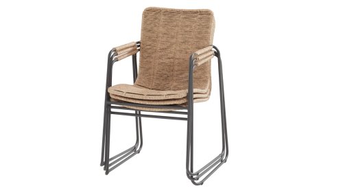 De stapelbare Palma dining tuinstoel van Taste by 4Seasons Outdoor is een prachtige eyecather op je terras. Een mooie comfortabele stoel, die in vele tuin stijlen niet misstaat. De trendy Palma tuinstoel van het tuinmeubel merk Taste 4SO, is een stapelbare wicker tuinstoel. Het open design is mede mogelijk gemaakt, doordat er gekozen is voor een RVS gepoedercoat frame. Daaromheen zit gedraaid onderhoudsvrij wicker, welke een natuurlijk look heeft. De Palma is er in 3 varianten: antraciet, light grey en natural. Het RVS frame is afgewerkt met een hoogwaardige antracietkleurige poedercoating.