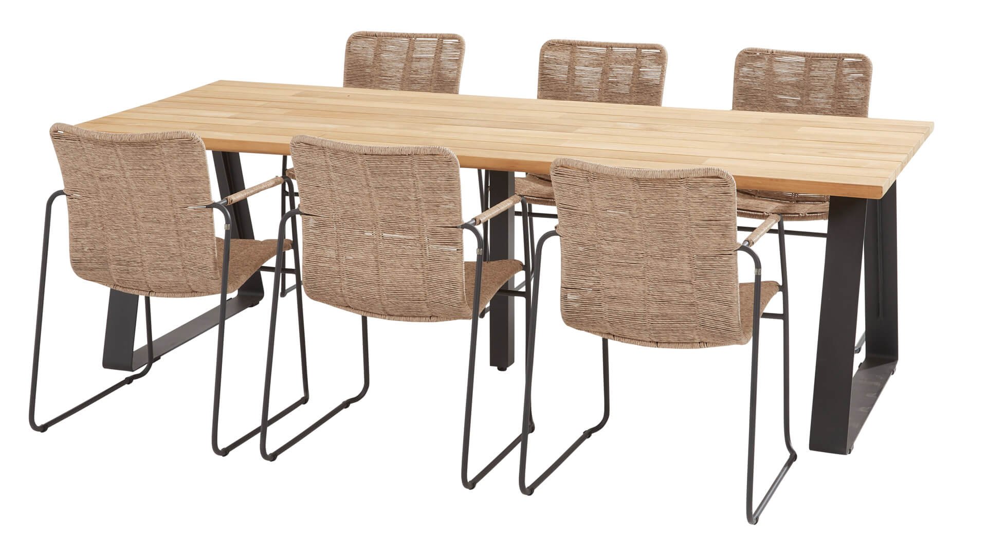 De Taste by 4Seasons Basso 240cm tafel is een zware kwaliteit tafel. De elegante sledepoot in combinatie met het warme teakhout zorgt voor een stoer geheel. De middenpoot zit er standaard bij, maar indien gewenst is de tafel ook zonder middenpoot te gebruiken.