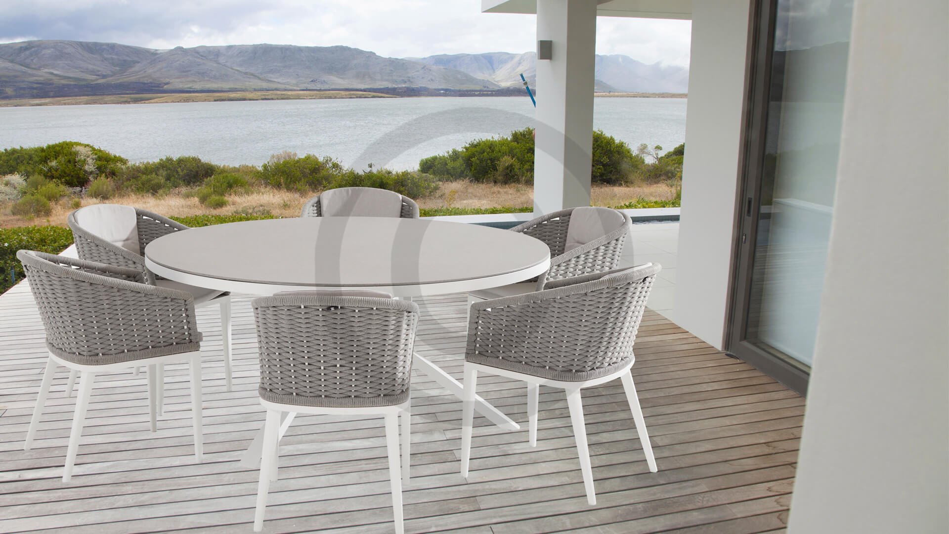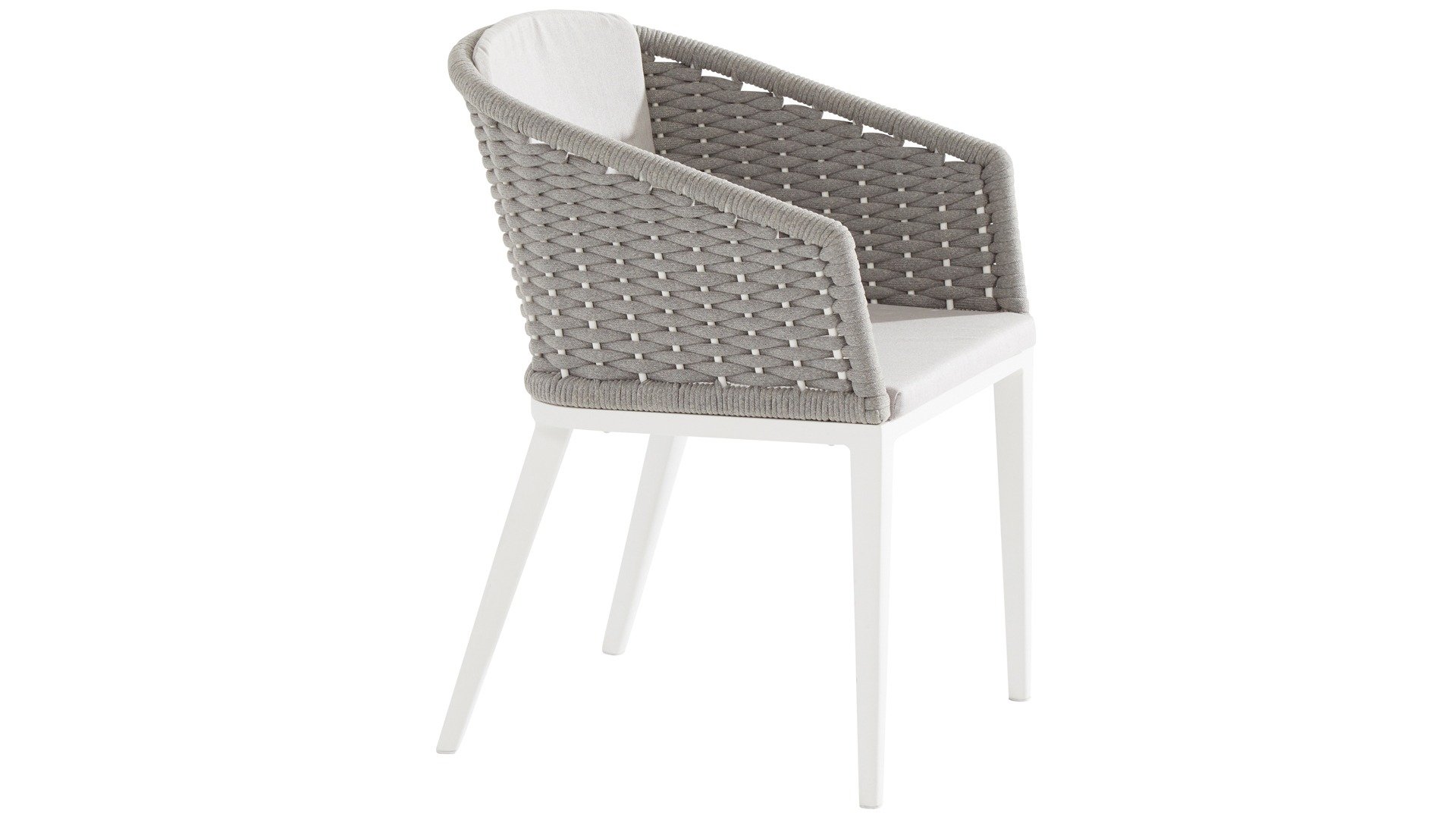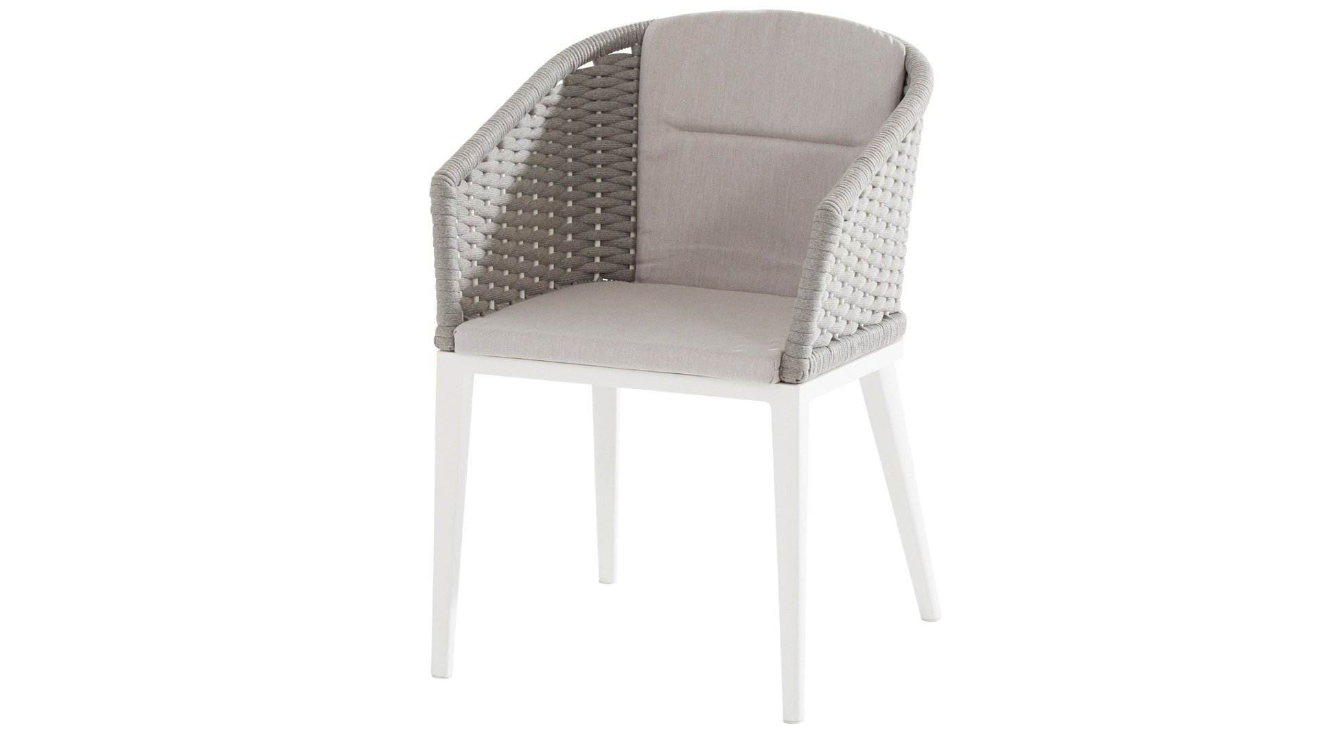 De Taste Portobello Dining is in white aluminium te verkrijgen als ook in het Matt Carbon aluminium, de White is gecombineerd met een Grey kleurig rope en de Matt Carbon met een Antraciete kleurig rope. Het Taste by 4 Seasons Portobello frame is omvlochten en zodanig geweven met synthetische wicker, in de vorm van touw (Rope), dat een comfortabele en "zachte" touch ontstaat.