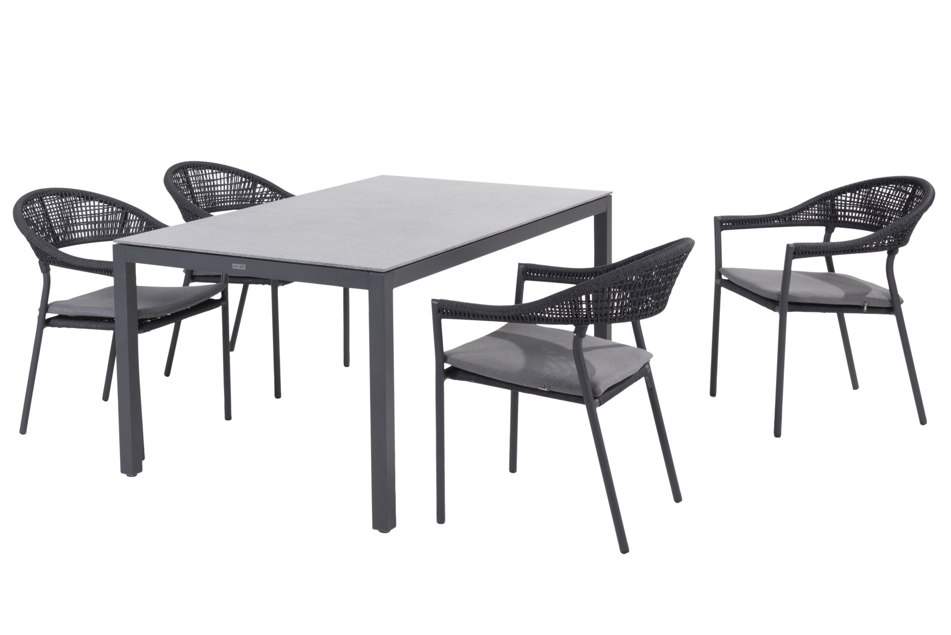 De Taste by 4 Seasons Sienna tuinset heeft zijn eigen unieke stijl die compleet word gemaakt met het moderne rope! De schoonheid zit hem in de details. De rug van de Sienna dining serie van Taste by 4Seasons is gevlochten uit rope en geeft een stevige maar comfortabele zit. Het frame vormt een speels en minimalistisch samenspel van vloeiende lijnen die een stevig geraamte vormen. Een lust voor het oog! De Sienna heeft een Antraciet aluminium frame.