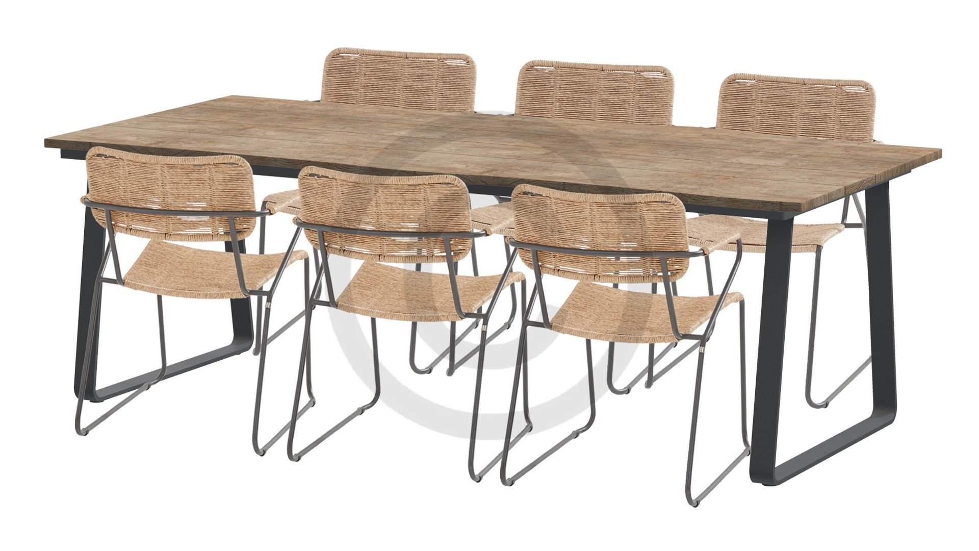 1 x 4 Seasons Outdoor Konos Tafel 220x95cm Antraciet/Robusto Teak