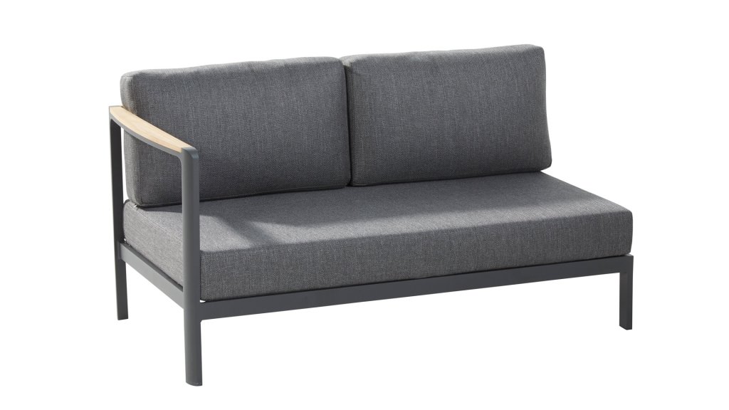 De sterke stof is bestand tegen een regenbui, uitritsbaar en wasbaar. Handig, maar let wel: de kussens zijn waterafstotend. Laat je ze lang in de regen liggen, dan kunnen ze alsnog nat worden aan de binnenkant. De hoes is uitritsbaar en wasbaar.