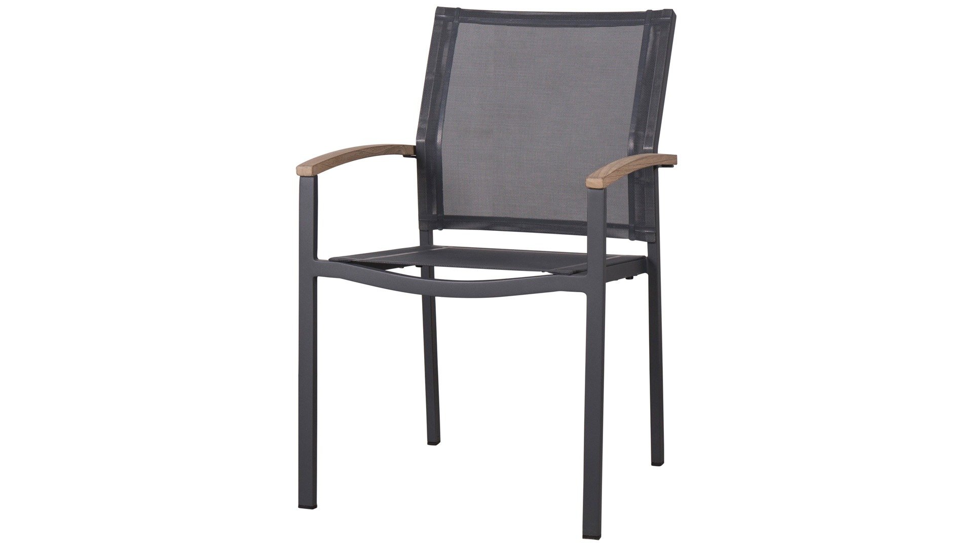 De Zebra Greenline Alex tuinstoel stapelbaar serie. Het frame van gepoedercoat Graphite aluminium is bedekt met een ebony of midnight grey gekleurde Batyline® stof. De Batyline® Textilene dat is gebruikt, is een bewezen synthetische stof die is ademend en scheurvast is voor meerdere jaren. De serie Greenline van Zebra combineert onder andere hedendaagse, ecologie en duurzaamheid met elkaar. In de corporate-concept Greenline is de kwestie van duurzaamheid en de selectie van milieuvriendelijke materialen, die worden verwerkt tot comfortabele, fraai vormgegeven, tijdloze meubels.