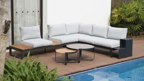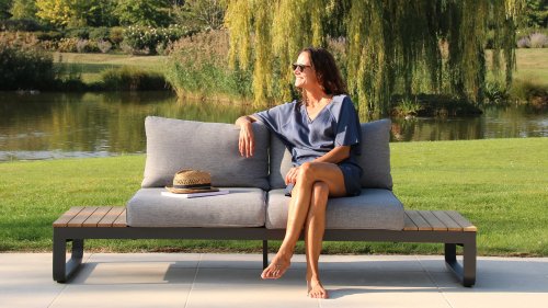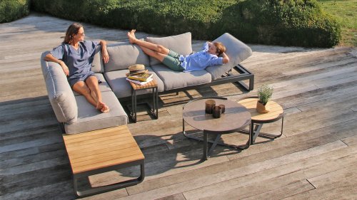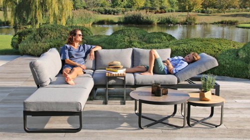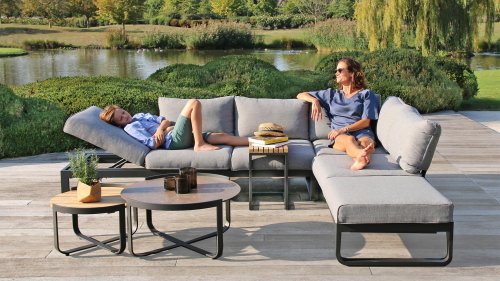 De Fly Lounge van Zebra bestaat uit verschillende modules die met elkaar gecombineerd kunnen worden. Of het nu gaat om een ruime loungecombinatie bestaande uit een driezitsbank met verstelbare rugleuning en een tweezitsbank met teakhouten inzetstukken of gewoon een loungebank - de verschillende modules zijn individueel samen te stellen, zodat er voor ieder wat wils is. elke smaak en elke ruimtelijke situatie. Naast de loungemodules zijn er ook bijzettafels, een voetenbank en een bijzettafel verkrijgbaar.