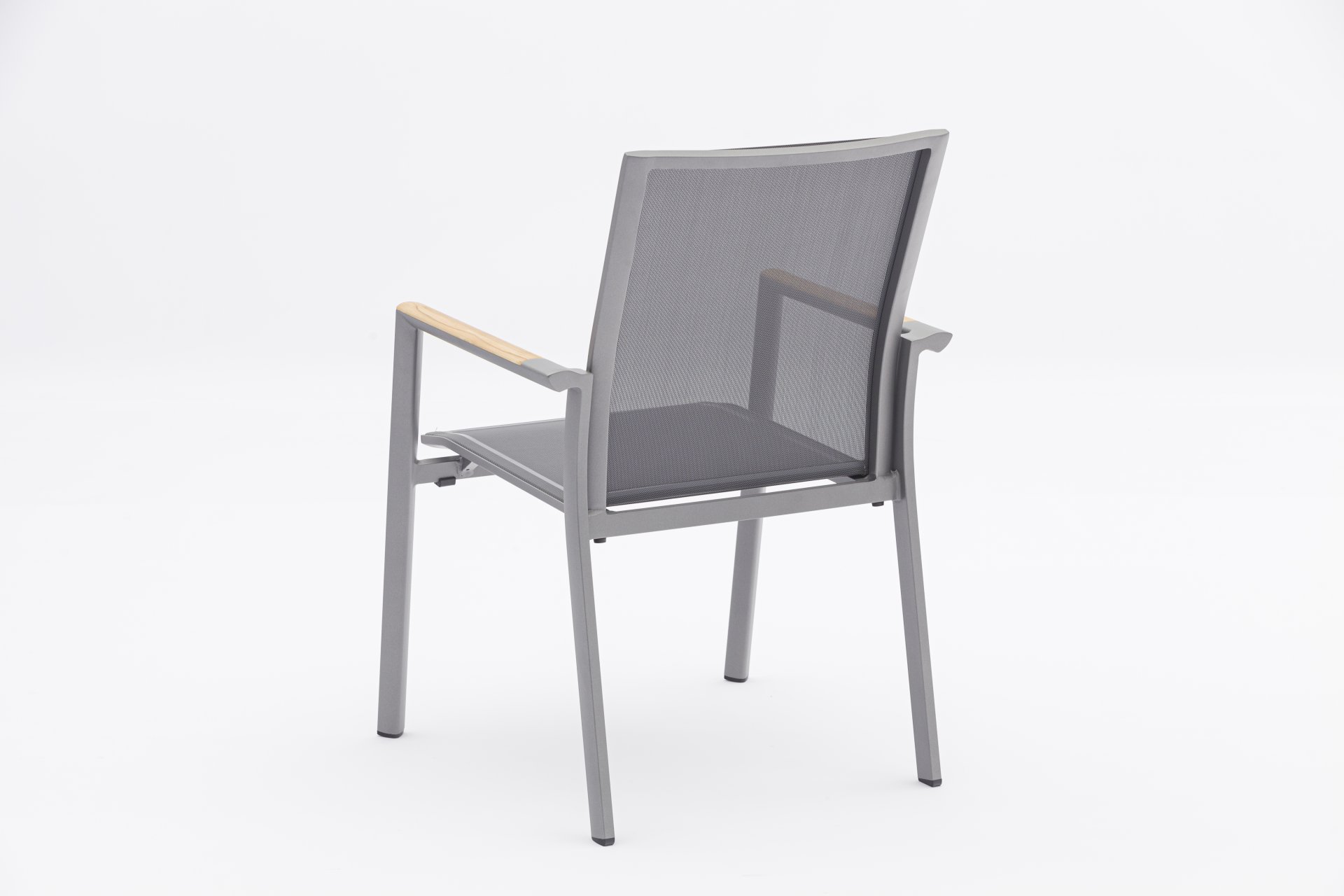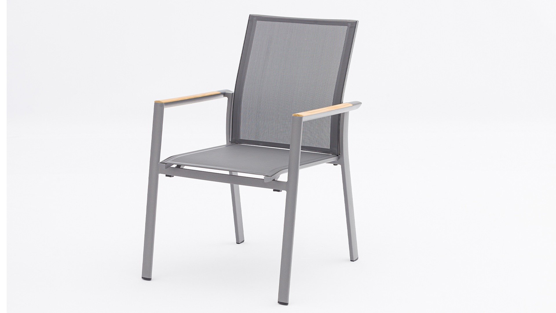 De Zebra Greenline Fly serie. Het frame van gepoedercoat aluminium Graphite, Elegance grey of RVS. Deze serie is bedekt met een Dark grey gekleurde Batyline® stof. De Batyline® Textilene dat is gebruikt, is een bewezen synthetische stof die is ademend en scheurvast is voor meerdere jaren. De serie Greenline van Zebra combineert onder andere hedendaagse, ecologie en duurzaamheid met elkaar. In de corporate-concept Greenline is de kwestie van duurzaamheid en de selectie van milieuvriendelijke materialen, die worden verwerkt tot comfortabele, fraai vormgegeven, tijdloze meubels.