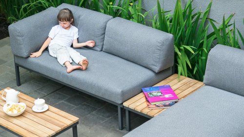 De Zebra Hudson Lounge belooft niet alleen een hoog niveau van comfort, maar is uiterst elegant en straalt klasse uit. Het fijne aluminium frame volgt de hoogwaardige zit- en rugkussens perfect op en vervolledigt het uiterlijk van de Zebra Hudson. De armleuning van gpoedercoat aluminium loopt in één vloeiende lijn achterlangs de rugleuning door, en vormt zo een oogstrelend lijnenspel met de teakhouten accenten. De Zebra Hudson mag gezien worden van alle kanten! Het gepoedercoat aluminium frame is onderhoudsvrij. De heerlijk dikke kussens zijn niet alleen van Tuva all weather kwaliteit, maar bieden door het gebruik van verschillende vullingen in zit- en rugkussens een extreem hoog zitcomfort. Vlei u neder in deze geweldige lounge-kussens en ervaar hoe echt loungen bedoeld is.