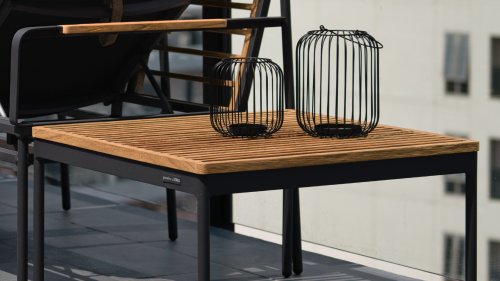 De nieuwe Max Lounge van Zebra maakt indruk met filigrane lijnen en een combinatie van materialen die accenten zet. Het frame van gepoedercoat aluminium in een donkere grijstint ("grafiet") oogt licht en vormt samen met de rugleuning en armleuningen van gerecycled teakhout een perfect contrast.