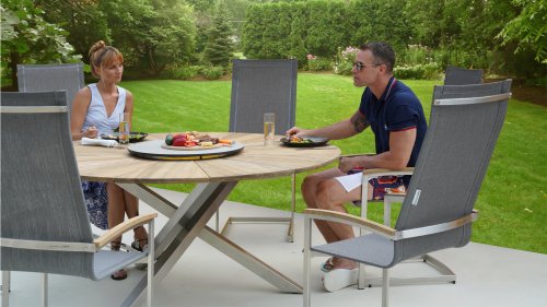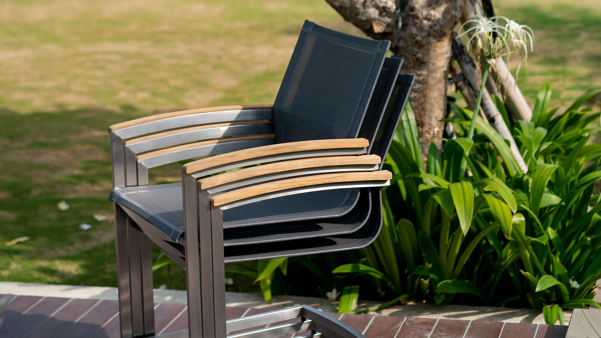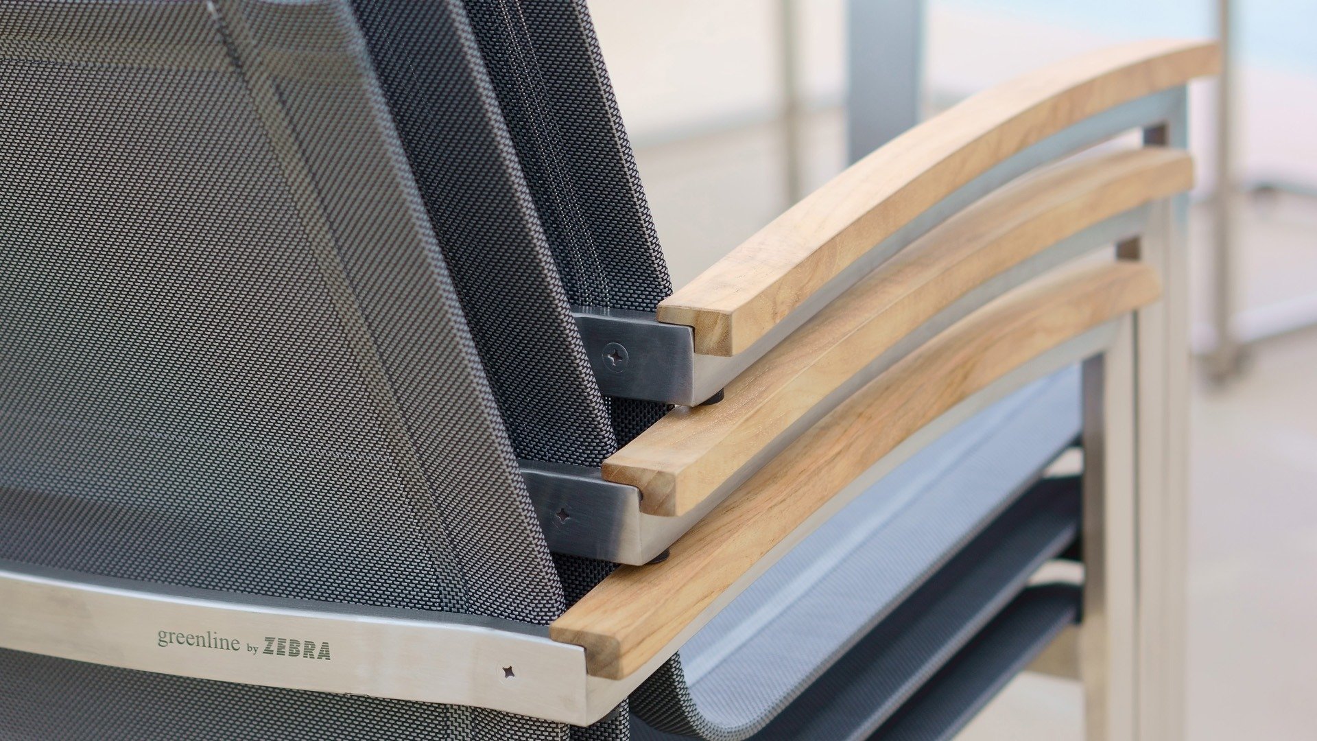 Zebra Setax Dining Chair is tijdloos en gemakkelijk te combineren. De Zebra Setax brengt optimaal zitcomfort en gebruiksgemak. Met de teakhouten armleuning als stijlvol accent. Deze Zebra Setax is er in meerdere uitvoeringen, waarvan één met een iets hogere rugleuning als gebruikelijk. De Zebra Setax tuinstoel is een stapelbaar serie. Het frame van geborsteld roestvrij staal is bedekt met een gekleurd textilenen stof. Stel uw tuinset samen, afhankelijk van uw behoeften. Of u nu kiest voor een kleine houten tafel of een grote RVS tafel, de Setax stapelstoel is geschikt voor elke gelegenheid.U kunt u eenvoudig de stoelen op elkaar stapelen of u laat ze natuurlijk om de tafel staan. Deze RVS stapelstoel Setax van Zebra is niet alleen een ergonomisch geperfectioneerde stoel, maar overtuigt ook door het minimalistische ontwerp en fijne teakhouten armleggers. Ook is er natuurlijk van de Setax dining stoel een swing variant leverbaar.