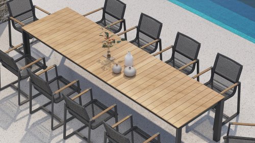 Minerva tafel 220x95cm Antraciet-Robusto Teak